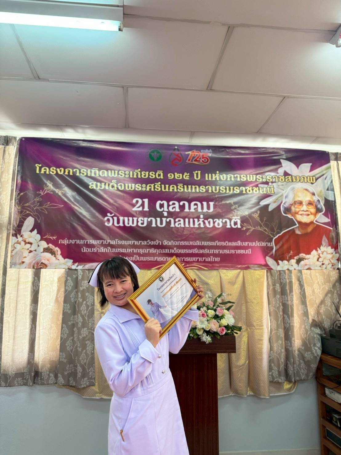 นอกจากนี้ ฝ่ายการพยาบาลได้มอบ ใบประกาศเกียรติคุณแก่พยาบาลดีเด่น เพื่อเชิดชูเกียรติและเป็นขวัญกำลังใจแก่ผู้ปฏิบัติงาน โดยมีผู้อำนวยการโรงพยาบาลวังเจ้าให้เกียรติมอบรางวัล