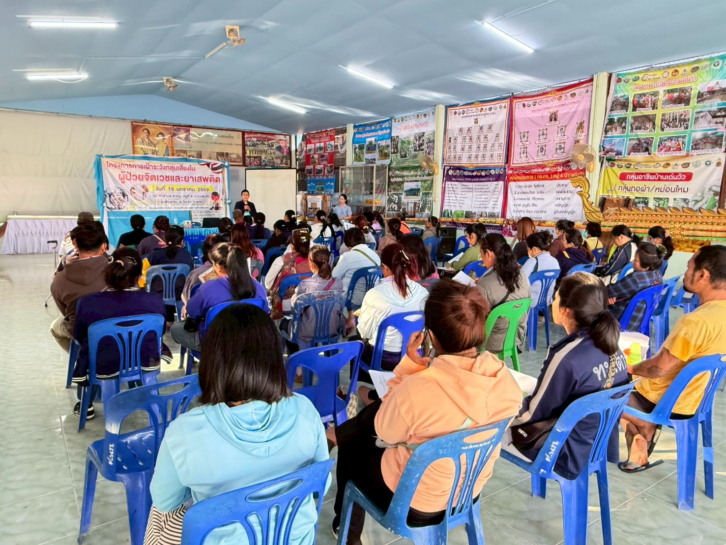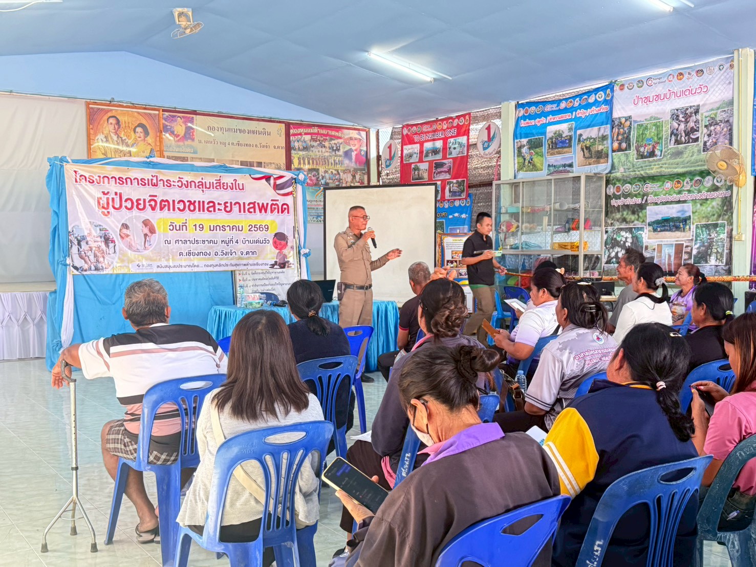 ในชุมชน โดยมีผู้เข้าร่วมประกอบด้วย แกนนำสุขภาพประจำครอบครัว และผู้ดูแลผู้ป่วยจิตเวช จำนวนทั้งสิ้น ๗๐ ราย ณ ศาลาประชาคม บ้านเด่นวัว ตำบลเชียงทอง อำเภอวังเจ้า โดยได้รับเกียรติจากวิทยากรสถานีตำรวจภูธรวังเจ้า โรงพยาบาลส่งเสริมสุขภาพตำบลบ้านวังเจ้า และโรงพยาบาลวังเจ้า เป็นวิทยากรในการดำเนินโครงการในครั้งนี้